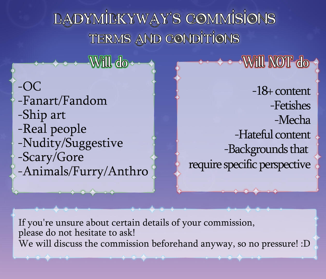 Commission sheets[Click the images to make them bigger and see them better!]